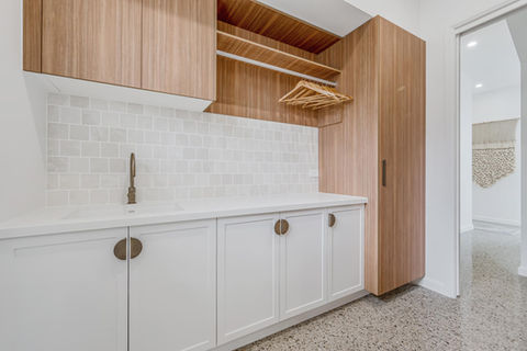 Additional features include ducted air conditioning, Solar panels - 10KW, luxe sheer curtains, electric blinds, louvred, glazed windows, a full mudroom with bench seating, a venetian render covered powder room, and a functional laundry.