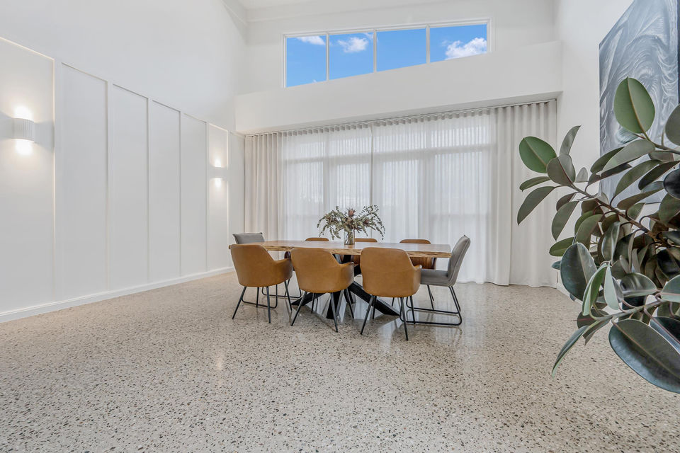 Step through landscaped gardens and into the magnificent entry where soaring double-height ceilings, banks of custom glazing and premium polished concrete flooring set the scene for what lies ahead.